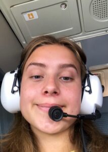 Rakel in cockpit having A BLAST, learning how everything works and discussing with captains how we can save the world.