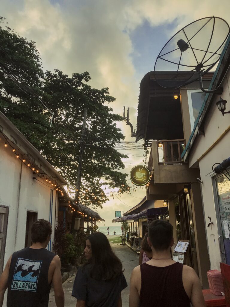 Taxisjåføren var litt sånn middels forvirra så han tok eit par runda før han omsider slapp oss av på feil side av stranda. Då fekk vi sjå både den stille, tomme, turistfrie sida, før vi dro innover og fann MAT.
