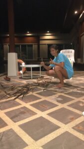 Eg og Arianna plukka til og med kvistar frå palmetre for å lage pil og boge til Katniss Everdeen. Ekte speiderånd!
