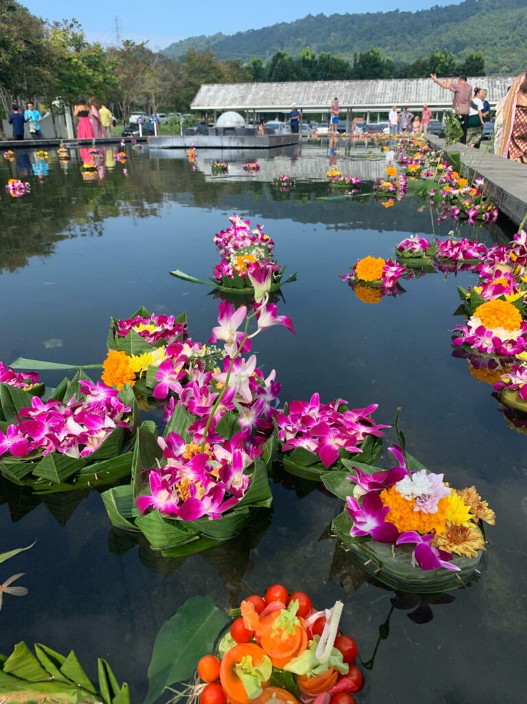 Loy krathong er thai festival for vanngudinna, og det feirast med å sette dekorerte bananstammar til sjøs. Og massemasse deilig thaimat-boda strødd over heile campus